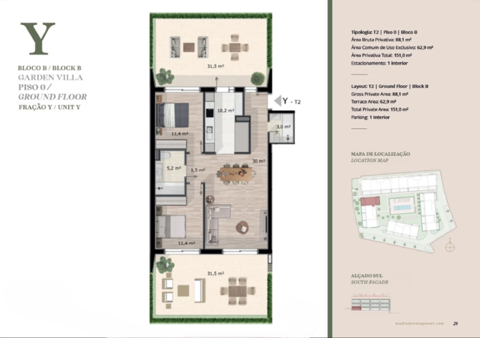 This modern 2 bedroom apartment, with 88,10 m² of floor space, stands out for its excellent distribution of spaces and high quality finishes, ideal for those looking for comfort and functionality in a contemporary environment.