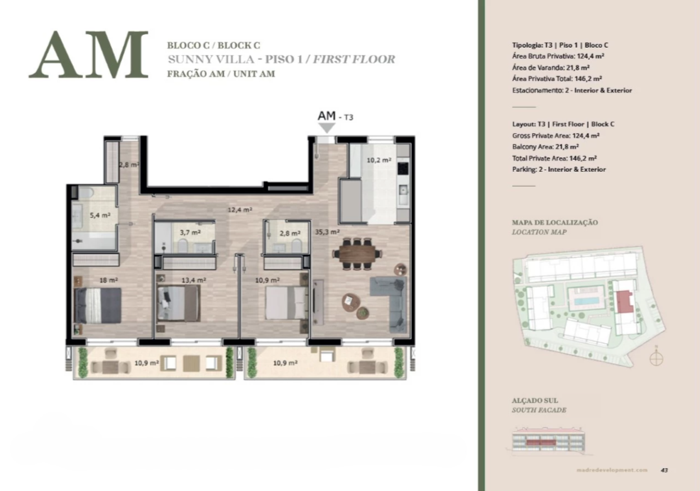 Este moderno apartamento T3, com 124,40 m² de área útil, destaca-se pela sua excelente distribuição de espaços e pelos acabamentos de elevada qualidade, ideais para quem procura conforto e funcionalidade num ambiente contemporâneo.